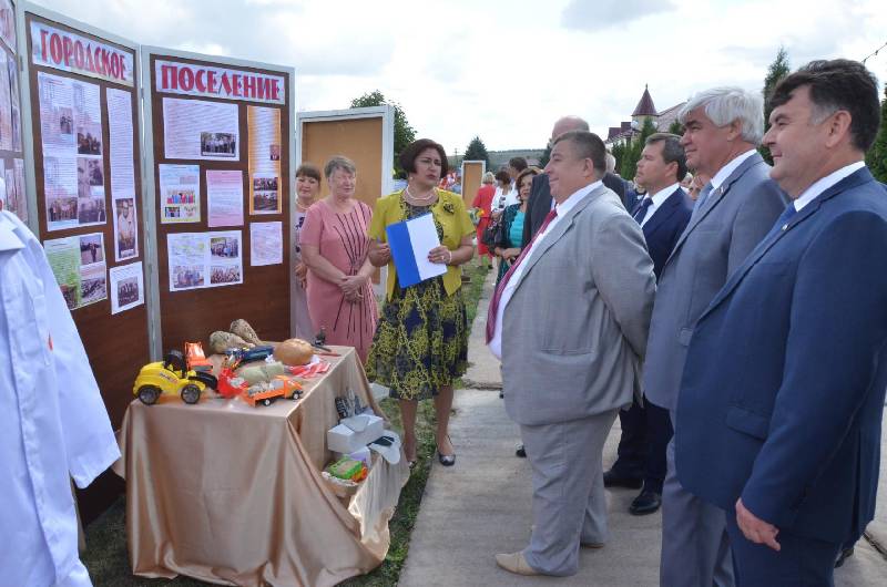 Сельские поселения подготовили и показали в театрализованном виде разные этапы и направления становления района: электрификацию, телефонизацию, коллективизацию, участие жителей района в Великой Отечественной войне, стахановское движение, производство зерна и сахарной свеклы, газификацию. Атяшевским городским поселением были подготовлены стенды с описанием организаций, созданных в начале основания поселка Атяшево, а также современных градообразующих предприятий – МПК «Атяшевский» и завод маслодельный «Атяшевский».